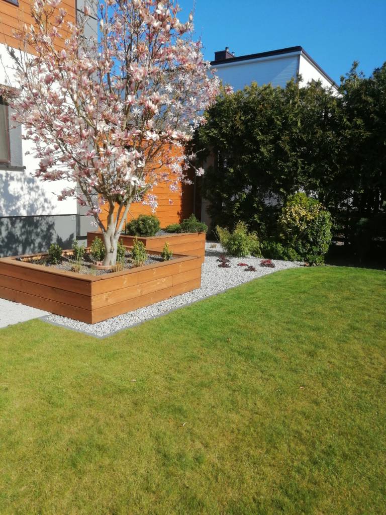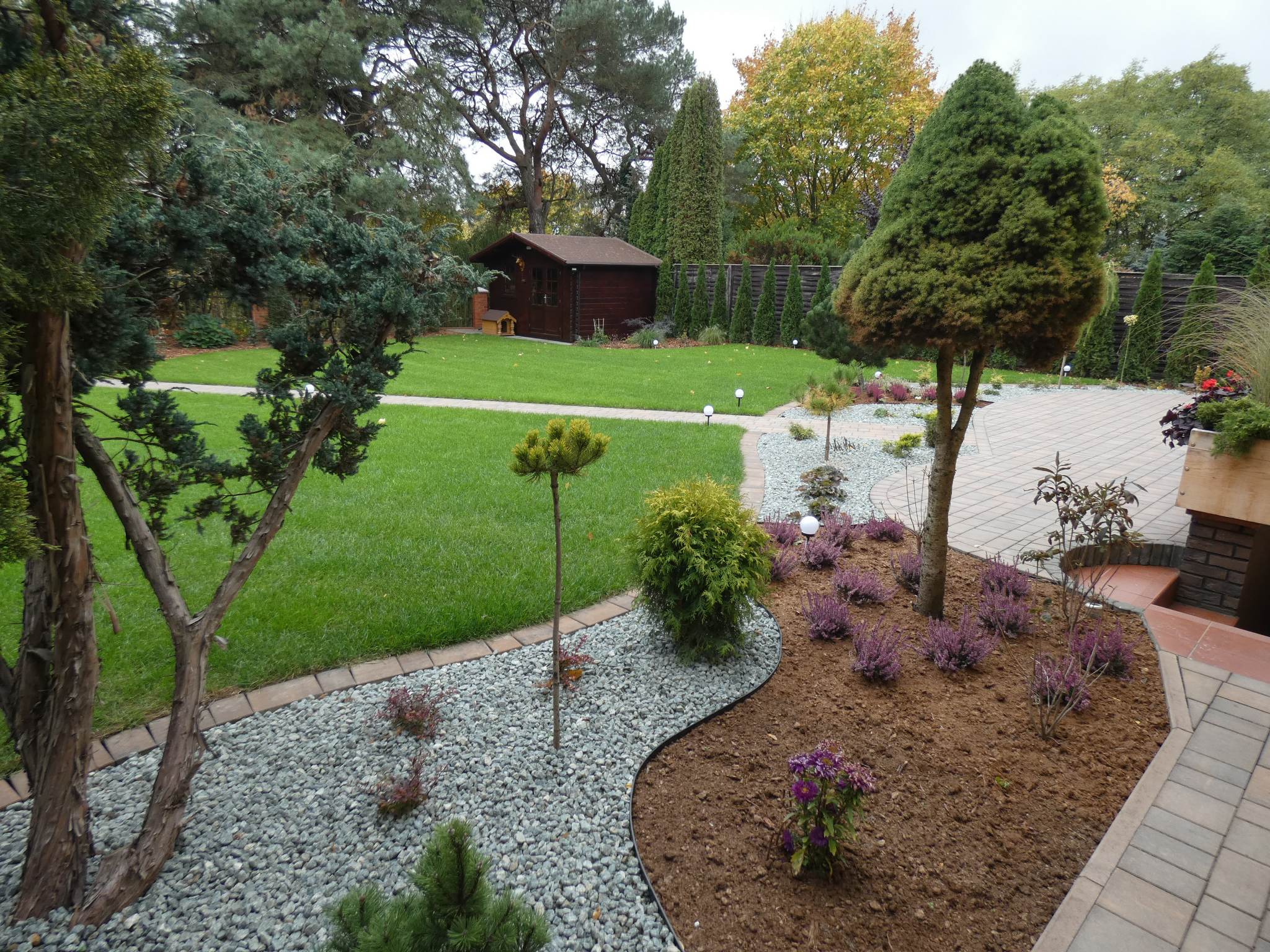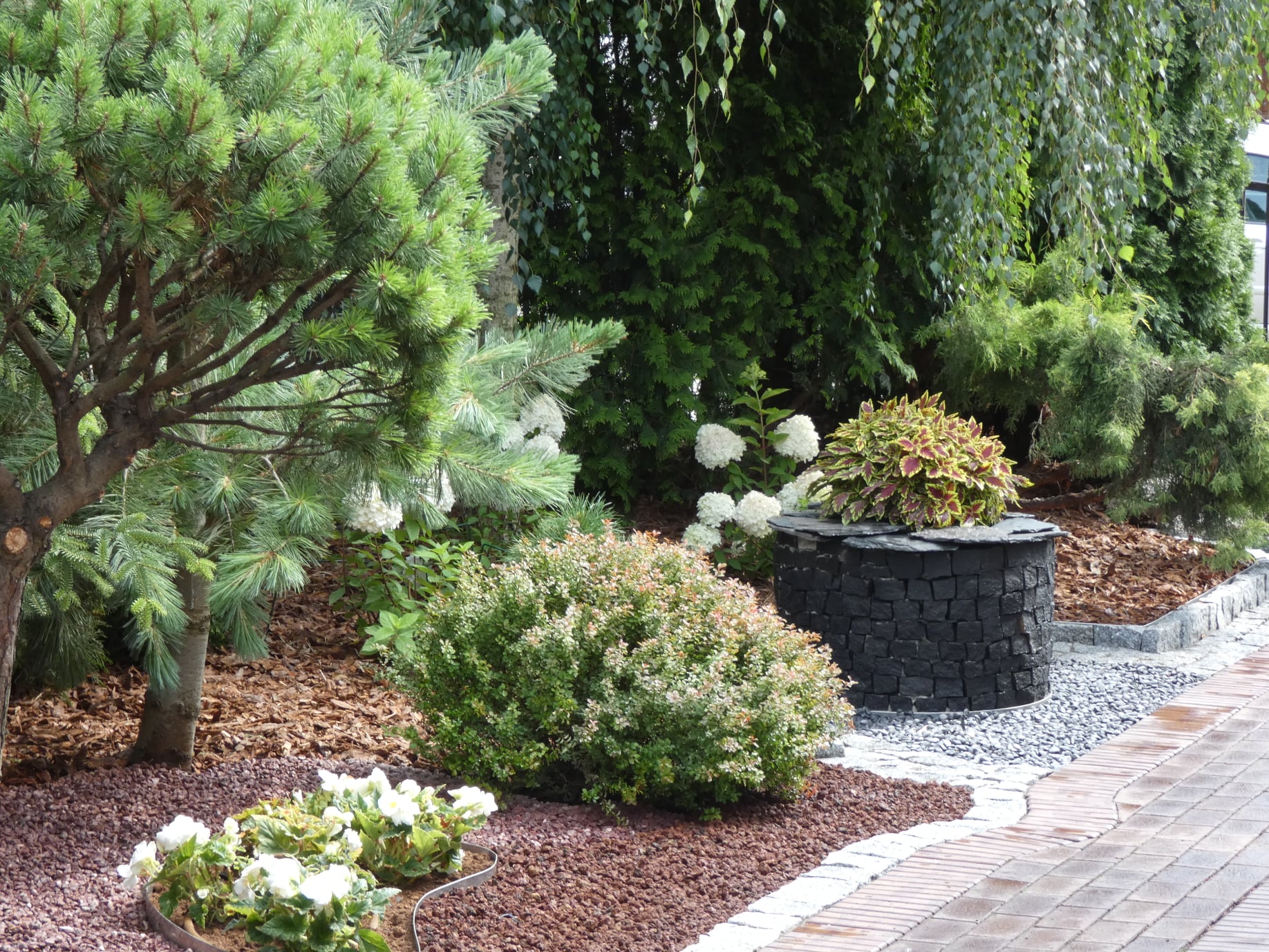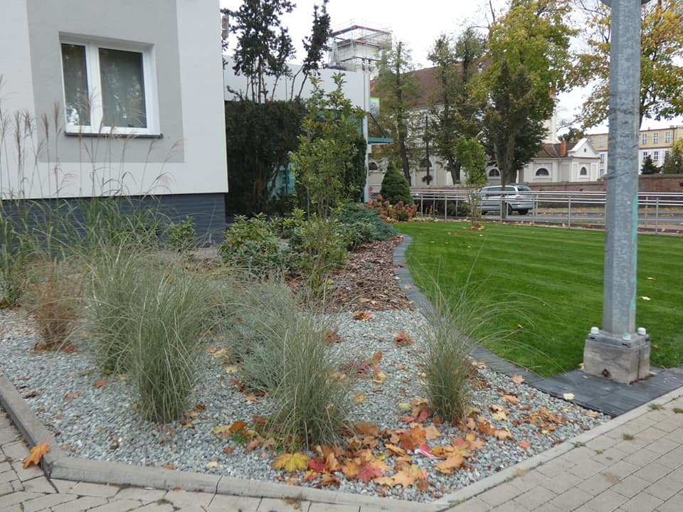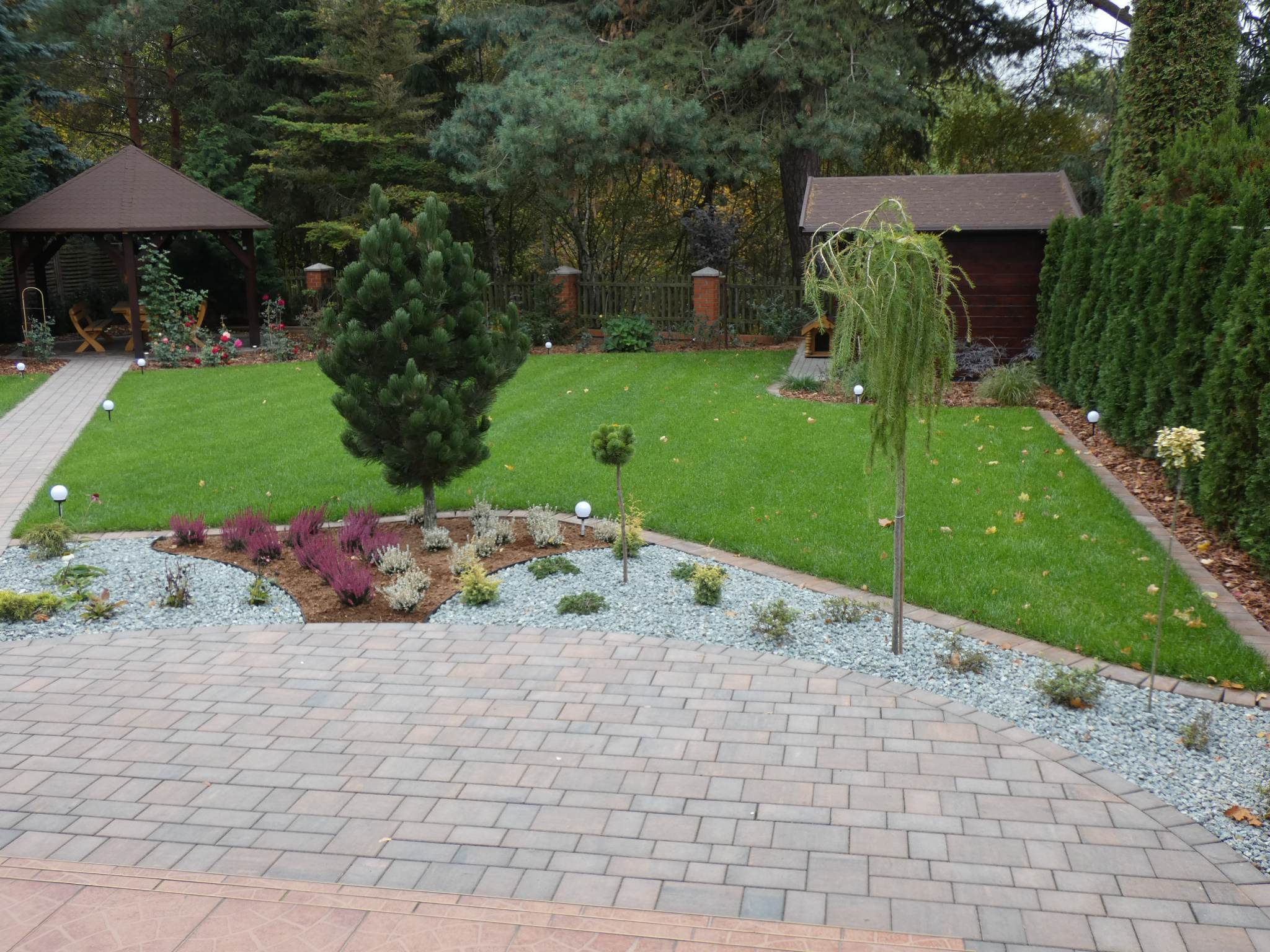 - prace od podstaw (melioracja, ukształtowanie terenu, rozsądzenia roślin, trawniki, ogrody żwirowe, automatycznie nawadnianie)
